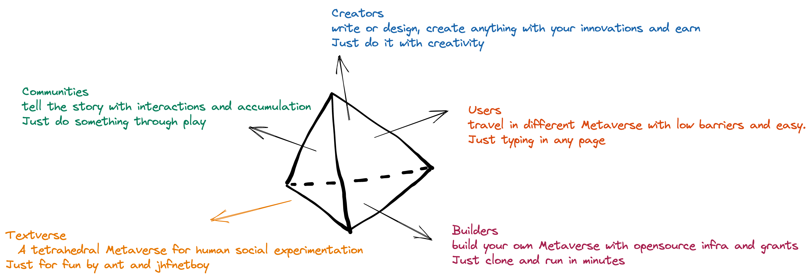 A tetrahedron Metaverse powered by text, blockchain, and AIGC!